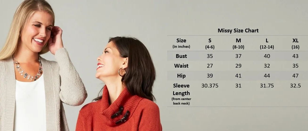 Our garments are measured on real-life women and designed for real-world living. We hope you find our size charts helpful in selecting your perfect size.